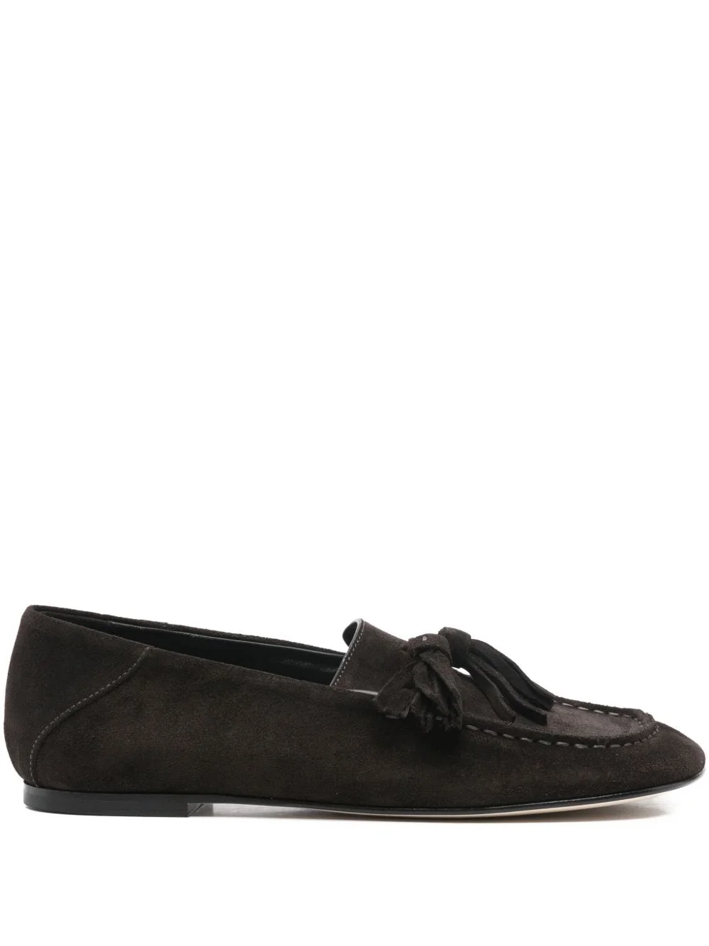 Drew loafer Highlights - Brown - Suede - Tassel detail - Topstitching - Slip-on style - Flat sole Made in Italy Composition Outer: Calf Suede 100% Lining: Calf Leather 100% Sole: Calf Leather 100%