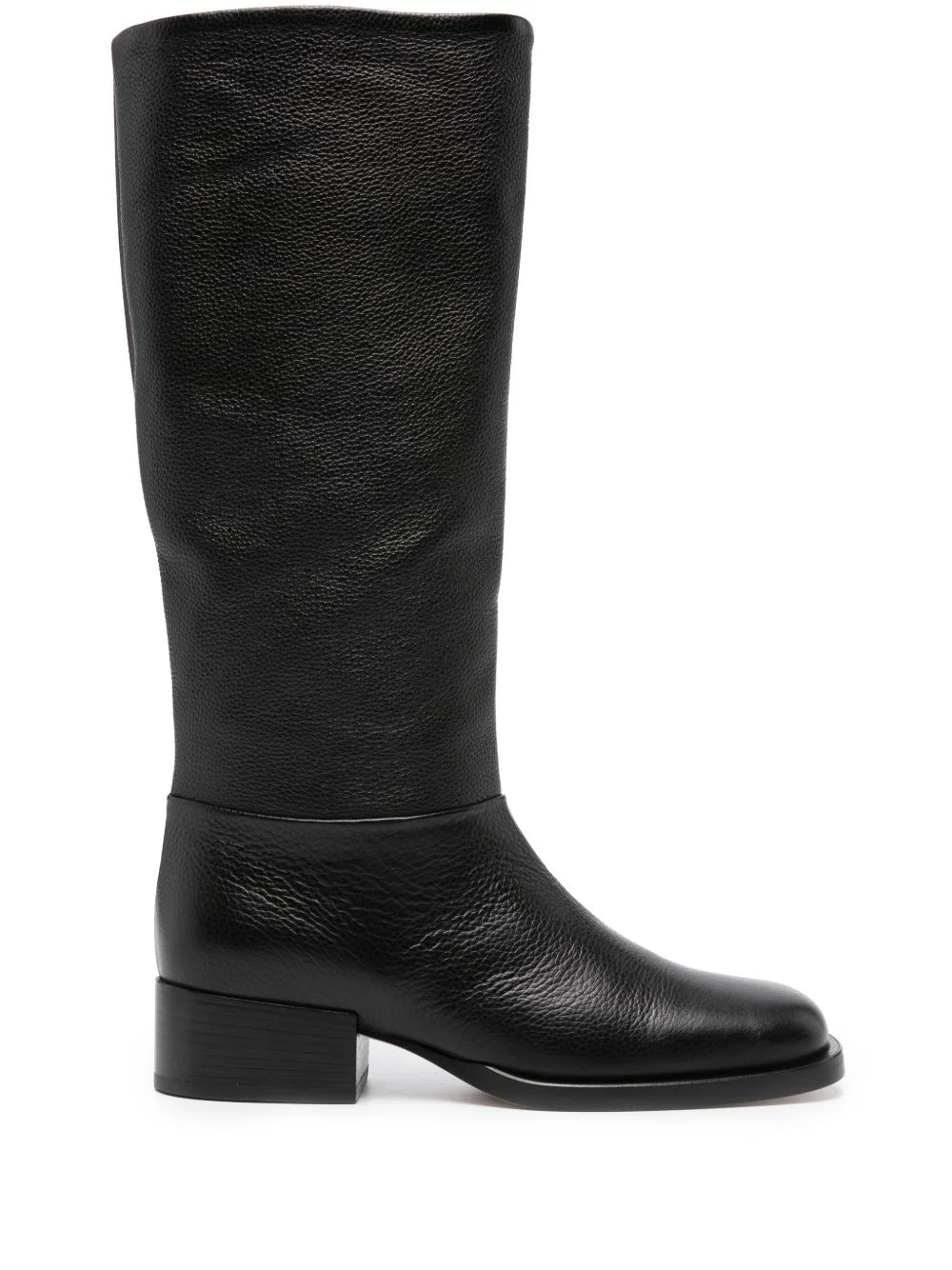smooth-grain leather boots Highlights - Black - Calf leather - Smooth grain - Square toe - Slip-on style - Below-knee length - Low block heel - Leather sole Made in Italy Composition Lining: Calf Leather 100% Sole: Calf Leather 100% Outer: Calf Leather 100% SIZE & FIT Measurement CIRCUMFERENCE 14.17 in(36 cm) HEEL 1.57 in(4 cm) HEIGHT 13.77 in(35 cm) Sole height 0.39 in(1 cm)