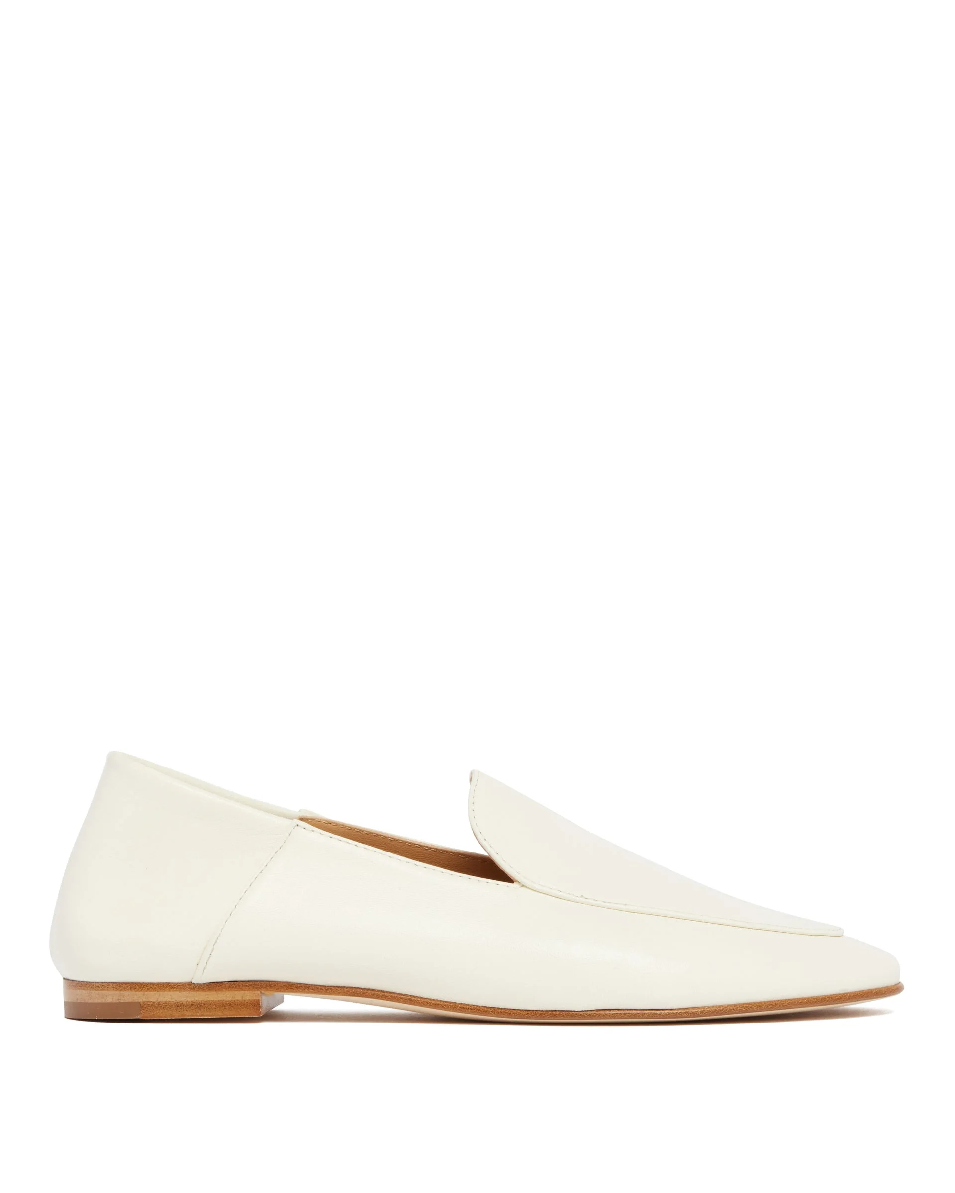 Dear Frances White Gio Leather Loafers. White leather upper, almond-shaped toe, leather sole, foldable heel, leather lining, narrow fit. DETAILS Model: GIO02WHI Composition: 100% Leather Made in: ITALY Season: FW25-26