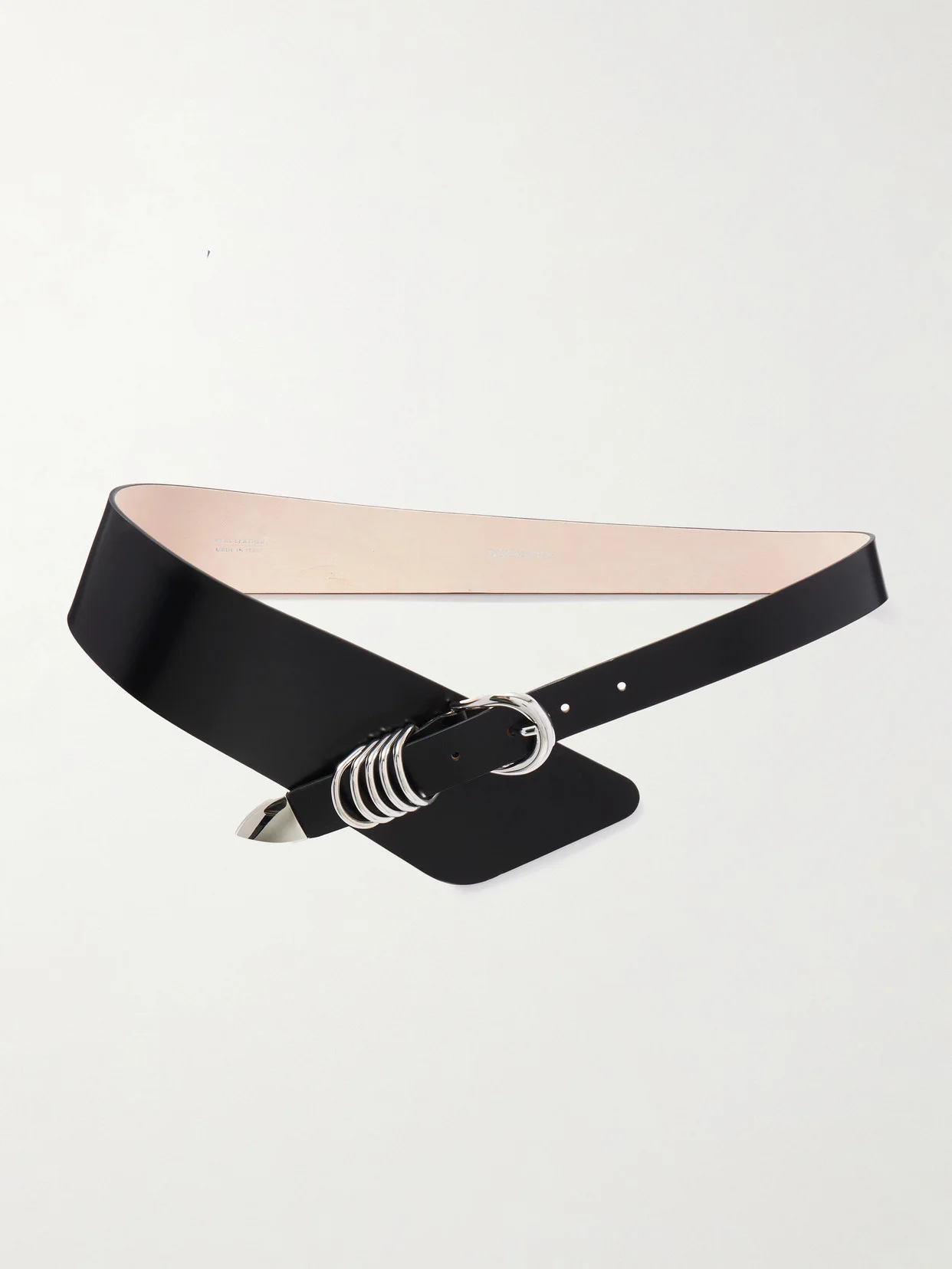 EXCLUSIVE AT NET-A-PORTER. "Elevating accessorizing to an art form" is Dehanche's core mission. Handcrafted in Italy from leather, this 'Alcott' belt has a tapered V-shape and a silver-tone buckle to match the row of rings and end tip. Use yours to cinch a dress or blazer. Lower-Impact Materials. This product is made using at least 50% lower-impact materials or ingredients. Find out more about our NET SUSTAIN criteria here.