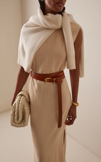 Dehanche: The French word for the asymmetrical position of the hips in ancient Greek statues. Inspired by vintage belts from the 80s and 90s, the label takes a modern approach to to the wardrobe staple with references with art and architecture. The Despina wrap belt is handcrafted in Italy from smooth, luxurious calfskin leather and signature beige suede lining. Features 10 holes to accommodate a broader range of sizes, allowing for styling options both on the hips and slung around the waist. PRODUCT DETAILS - Buckle fastening - Composition: gold zamack alloy metal hardware, vegetable-dyed calfskin leather, nubuck lining - Designer color: Terre - Handmade in Italy SIZE & FIT - Height: 1"
