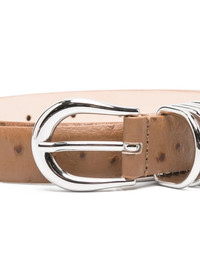 hollyhock ostrich-embossed belt Highlights - Camel brown - Silver-tone hardware - Ostrich-embossed leather - Multiple rings detail - Buckle fastening - This piece comes complete with a protective dust bag. Made in Italy Composition Calf Leather 100% SIZE & FIT Measurement TOTAL LENGTH 33.85 in(86 cm) WIDTH 0.9 in(2.3 cm) Minimum Length 25.19 in(64 cm)