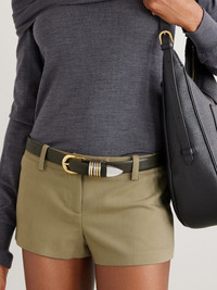 EXCLUSIVE AT NET-A-PORTER. Dehanche believes that a good belt can be "the most elegant accessory in your wardrobe." Handcrafted in Italy, this 'Hollyhock' style is made from smooth leather and has a two-toned buckle fastening with a row of rings instead of a simple loop. Lower-Impact Materials. This product is made using at least 50% lower-impact materials or ingredients. Find out more about our NET SUSTAIN criteria here. Size & Fit - Designed to be worn on the hips or waist - Measurements can be found in the link below Details & Care - Dark-green leather - Buckle fastening - By purchasing this product, you are supporting responsible leather manufacturing through Leather Working Group.