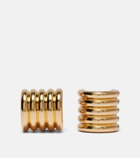 Dehanche jewelry is designed in Paris and handcrafted in Los Angeles by skilled artisans using traditional techniques. The Hollyhock earrings are made from gold-plated sterling silver and echo the design of the brand's signature belt with five interlocking rings. Product Details - Material: gold-plated 925 sterling silver - Made in the USA - Item color: gold - Color: gold - Includes: box, dust bag - Item number: P01118103 Size & Fit - Length 1cm-0.5" - Width 1cm-0.5"