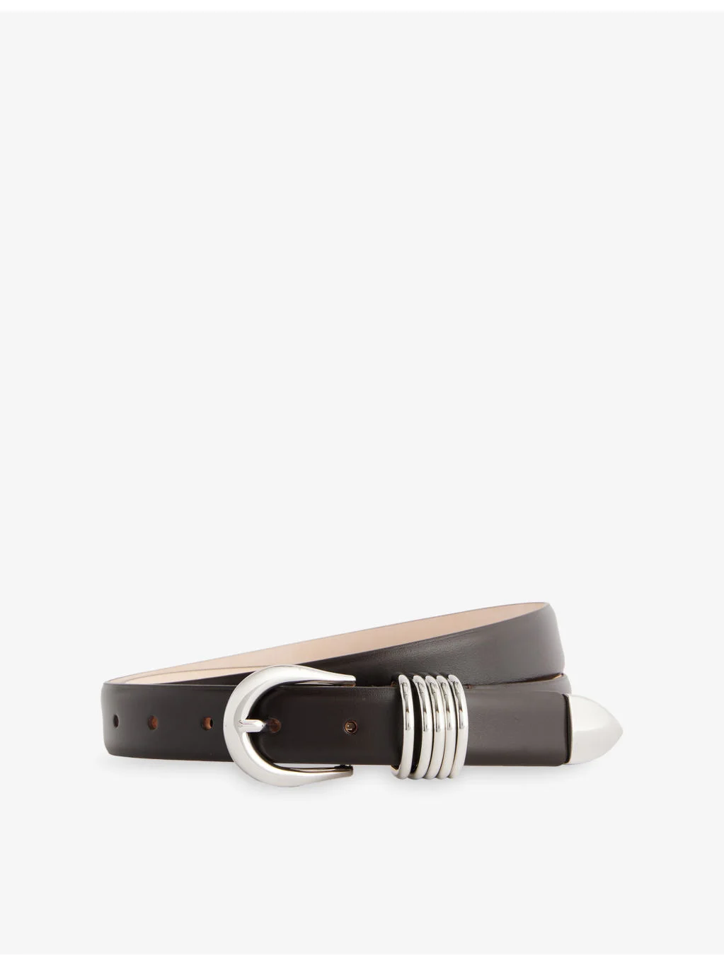 PRODUCT DETAILS - Dehanche leather belt - 100% leather - Buckle fastening - Five metal loops, 10 holes, all-over smooth leather, contrast colour and foiled branding at back, silver-toned hardware - Specialist leather clean - Length: 94cm - Width: 2.5cm - Made in Italy - Comes with a dust bag Ref: R04583800