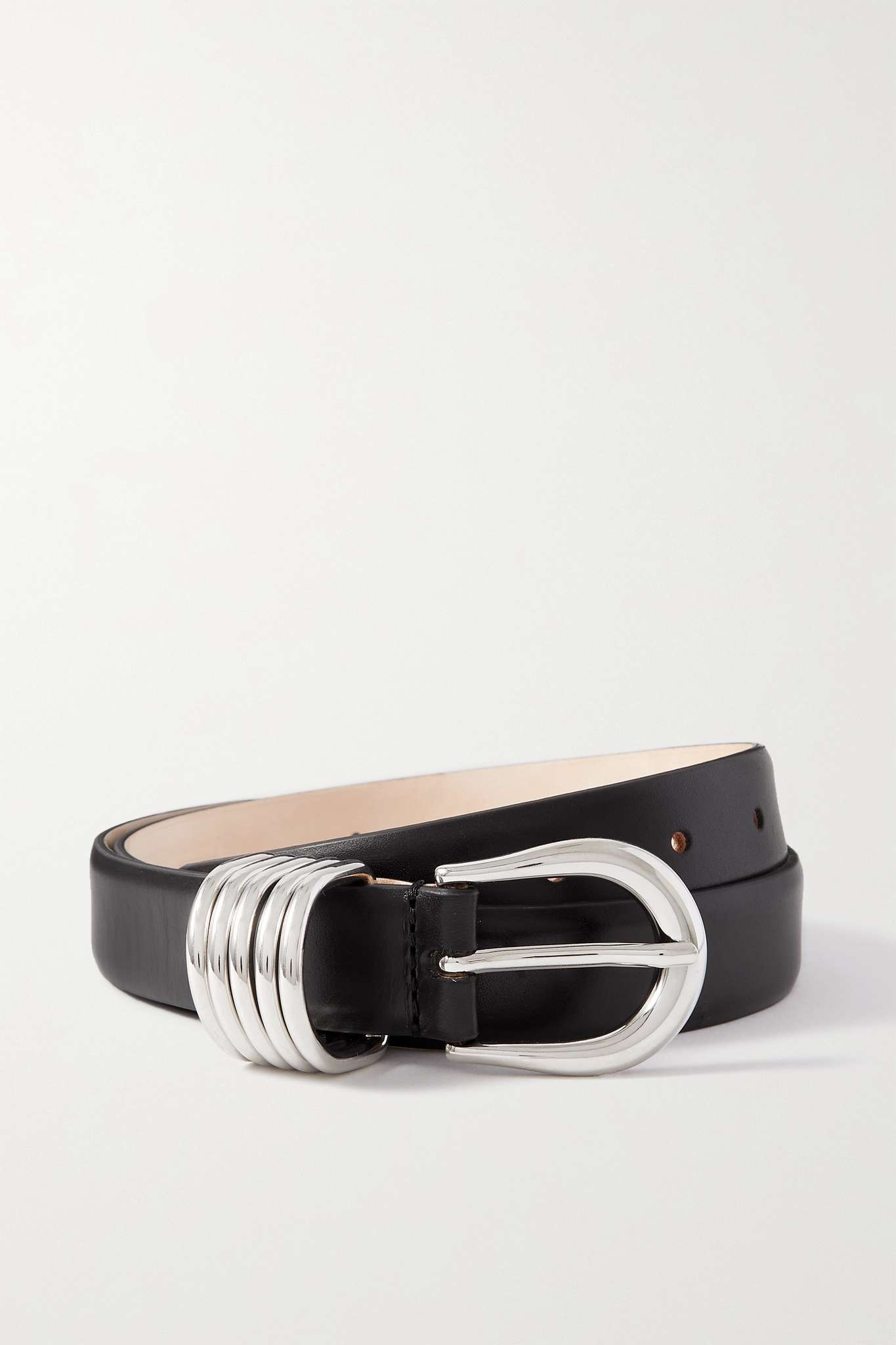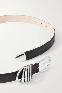 Dehanche believes that a good belt can be "the most elegant accessory in your wardrobe." Handcrafted in Italy, this 'Hollyhock' style is made from smooth leather and has a silver-tone buckle fastening with a row of rings instead of a simple loop. Size & Fit - Designed to be worn on the hips or waist - Measurements can be found in the link below Details & Care - Black leather (Calf) - Buckle fastening