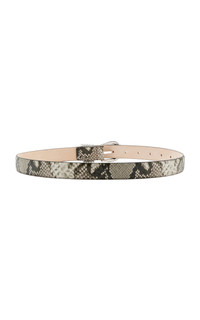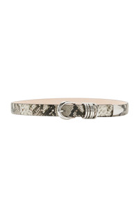 Dehanche: The French word for the asymmetrical position of the hips in ancient Greek statues. Inspired by vintage belts from the 80s and 90s, the label takes a modern approach to to the wardrobe staple with references with art and architecture. The debut style of Dehanche radiates a subtle yet sophisticated aesthetic that encapsulates the essence of polished dressing. The 3-ring belt is handcrafted in Italy from python-embossed leather with a signature nubuck lining. The shining silver hardware buckle, rings and belt-tip add polish to any look. PRODUCT DETAILS - Buckle fastening - Composition: zamack alloy metal hardware, vegetable-dyed calfskin leather, nubuck lining - Handmade in Italy SIZE & FIT - Height: 1"