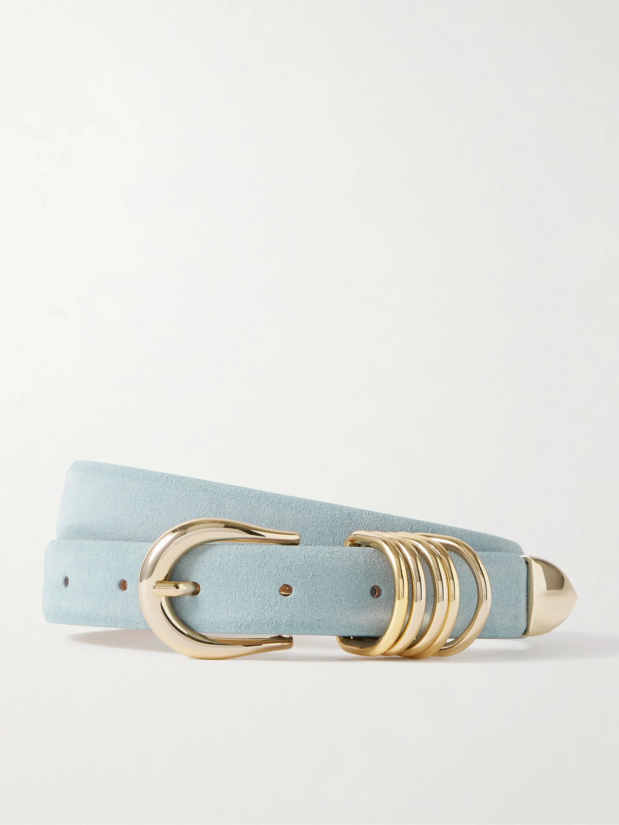 Dehanche believes that a good belt can be "the most elegant accessory in your wardrobe." Handcrafted in Italy, this 'Hollyhock' style is made from smooth suede and has a gold-tone buckle fastening with a row of rings instead of a simple loop. Lower-Impact Materials. This product is made using at least 50% lower-impact materials or ingredients. Find out more about our NET SUSTAIN criteria here.