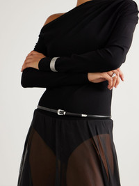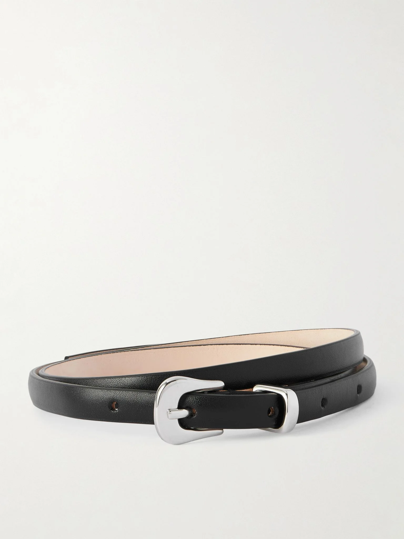 Dehanche's 'Lefil' belt has been handcrafted in Verona, Italy from leather in a skinny silhouette. The silver-tone buckle and hardware have a subtle Western-inspired vibe, making anything you wear it with feel instantly cool. Lower-Impact Materials. This product is made using at least 50% lower-impact materials or ingredients. Find out more about our NET SUSTAIN criteria here. Size & Fit - Designed to be worn on the waist - Measurements can be found in the link below Details & Care - Black leather (Calf) - Buckle fastening - By purchasing this product, you are supporting responsible leather manufacturing through Leather Working Group.