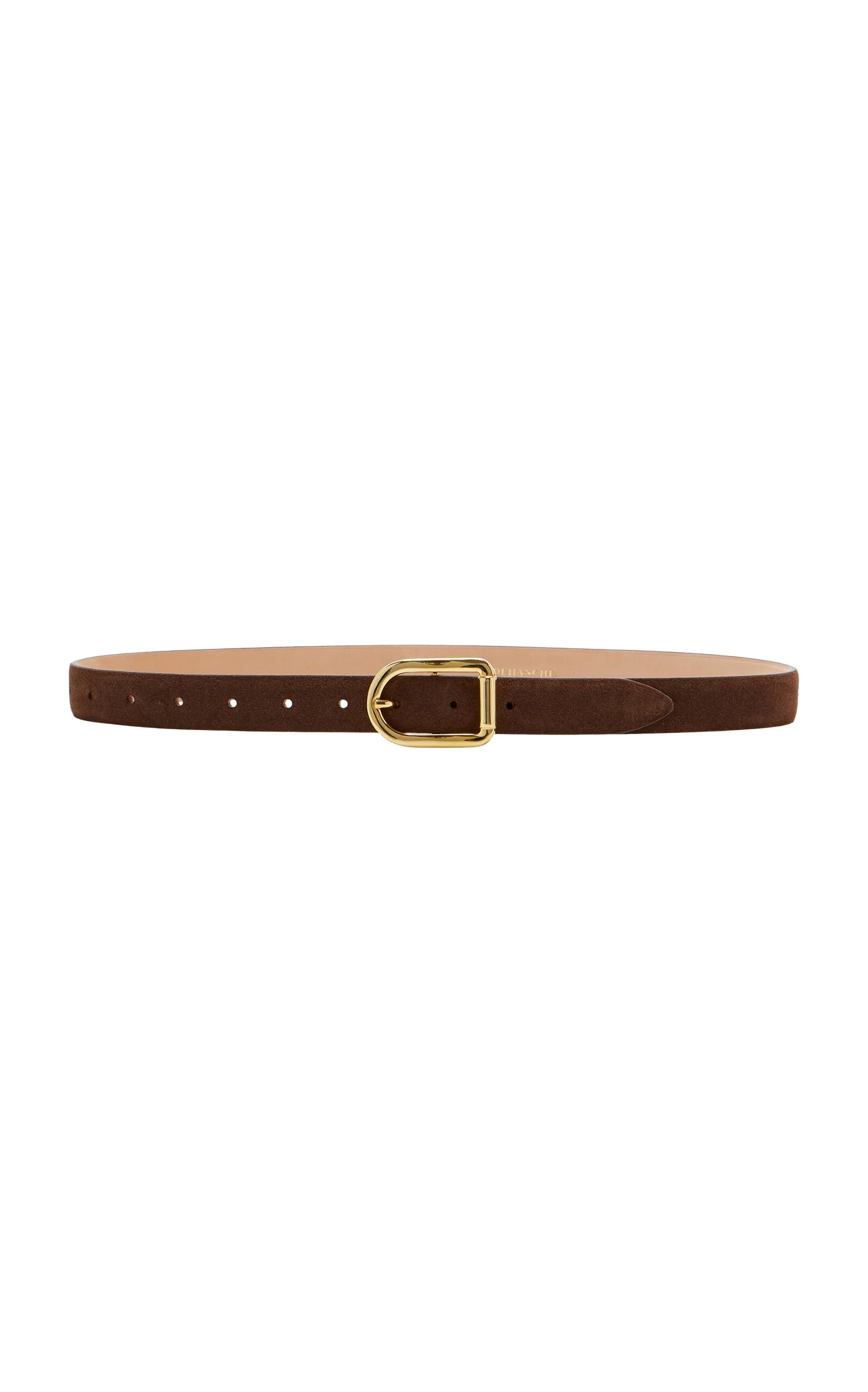 Dehanche: The French word for the asymmetrical position of the hips in ancient Greek statues. Inspired by vintage belts from the 80s and 90s, the label takes a modern approach to to the wardrobe staple with references with art and architecture. Designed to strike the perfect balance between casual everyday wear and sophisticated dressy affairs, the streamlined 'Mija' is a testament to understated elegance. Handcrafted in Italy from suede, it's back by signature nubuck and topped with a gold-tone buckle. PRODUCT DETAILS - Buckle fastening - Composition: suede - Designer color: Chocolate - Made in Italy