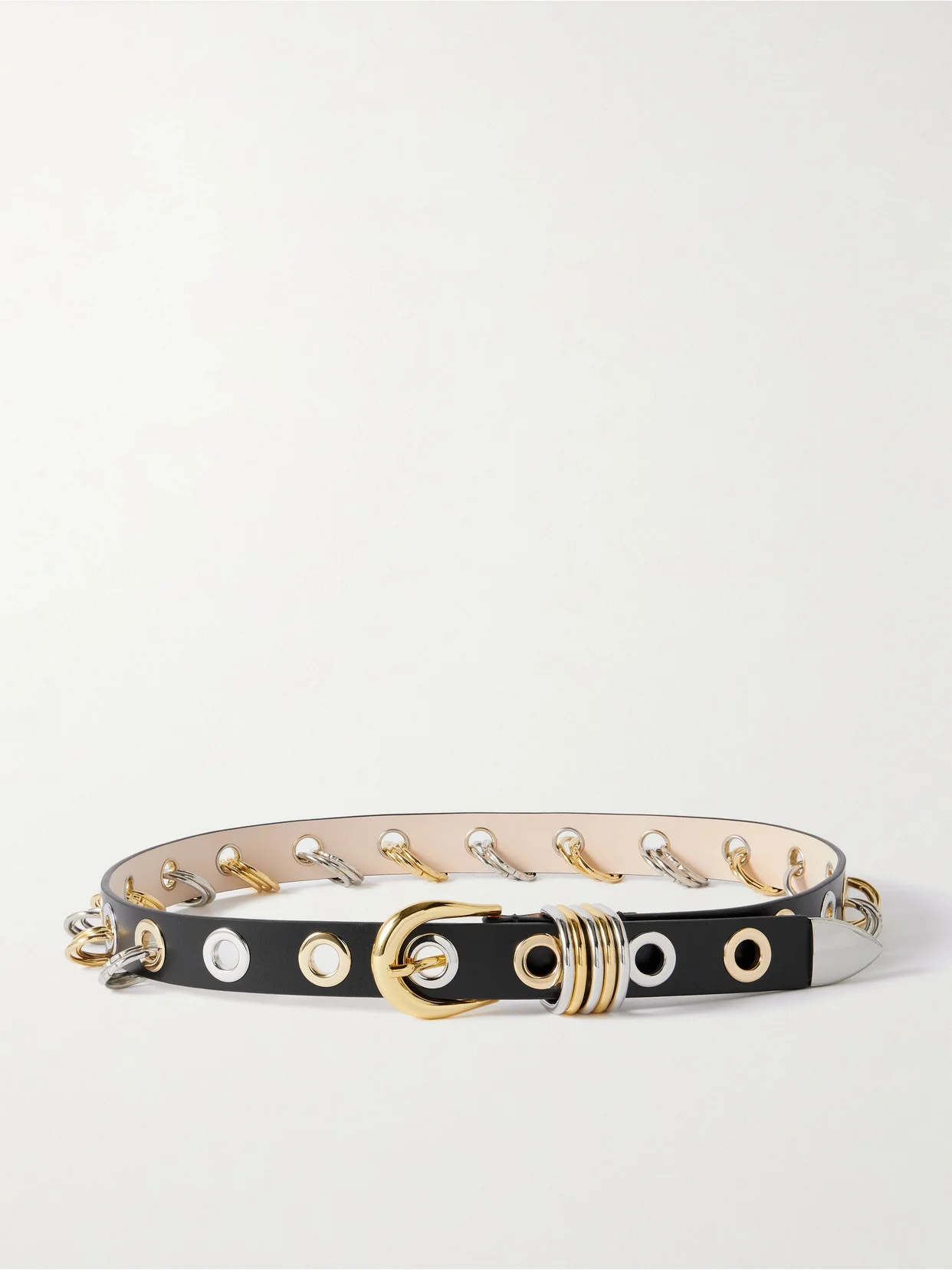 Dehanche's 'Revenge' belt is inspired by punk culture. It's been handcrafted in Italy from supple leather and embellished with gold and silver-tone hardware including grommets, rings and a pointed tip. It's the perfect way to add character to casual outfits.