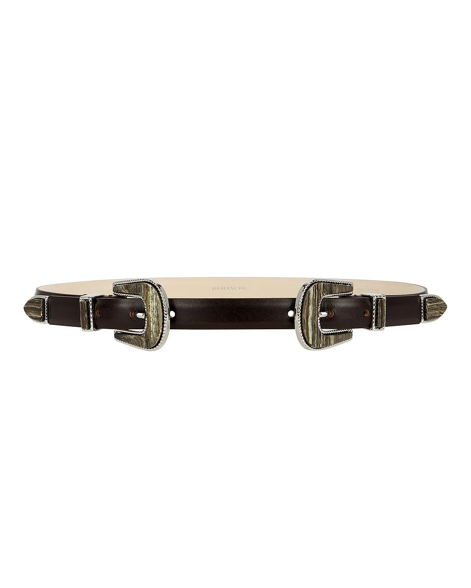 Details - Responsibly sourced leather (LWG-certified) - Made in Italy - Onyx inlay buckle closure - Genuine suede lining - Western Styled Buckle - Silver Hardware - Measures approx 3 cm in Width - Our Style No. DCHF-WA105 - Manufacturer Style No. TRAVDOUB-LEA