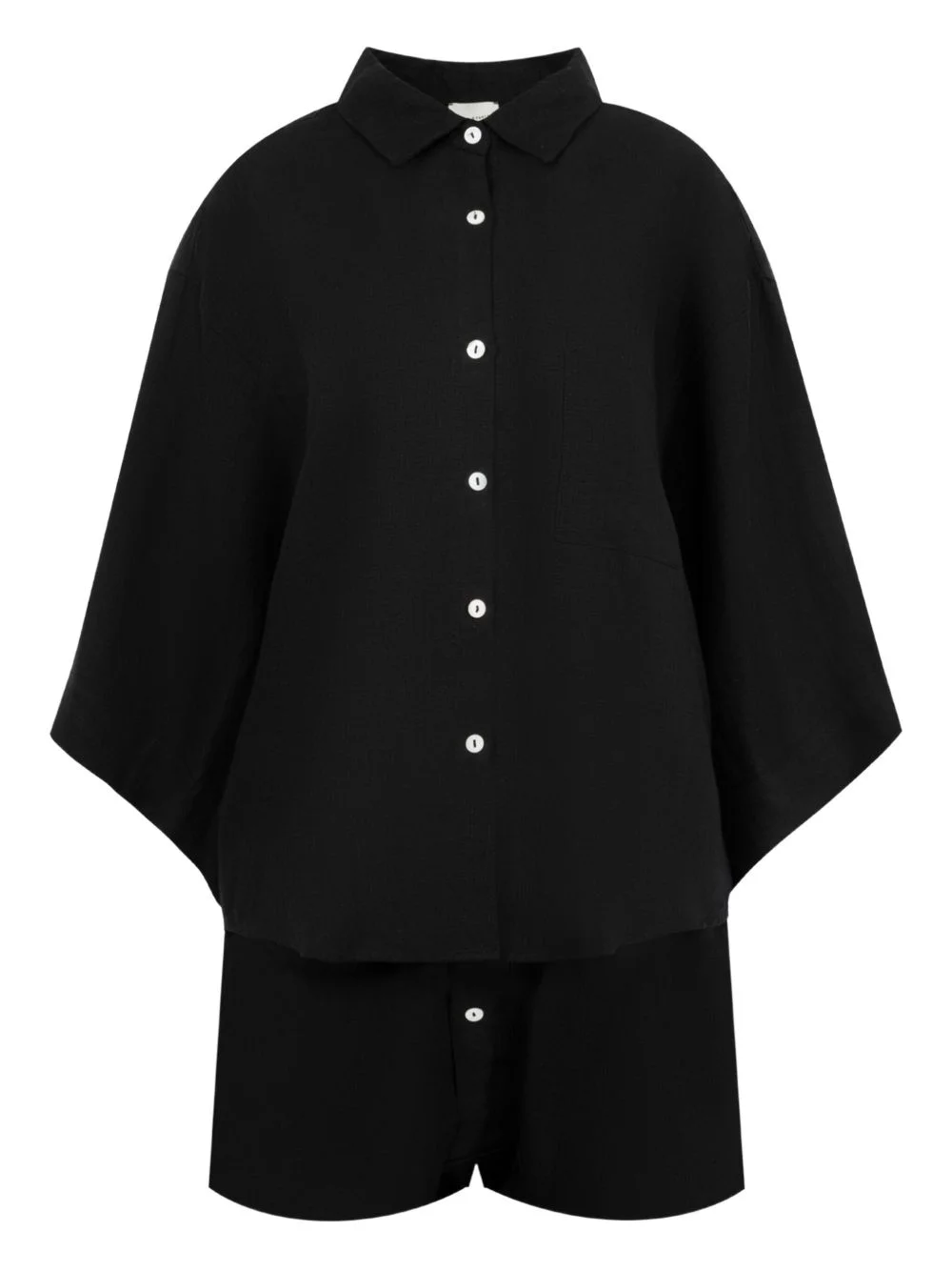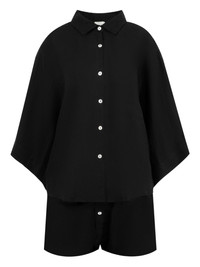 button-front wide-sleeve shirt and shorts set Highlights - Black - Wide sleeves - Button front - Classic collar - Elasticated shorts Imported Composition Organic Cotton 100% Washing instructions Read Manufacturer Guidelines