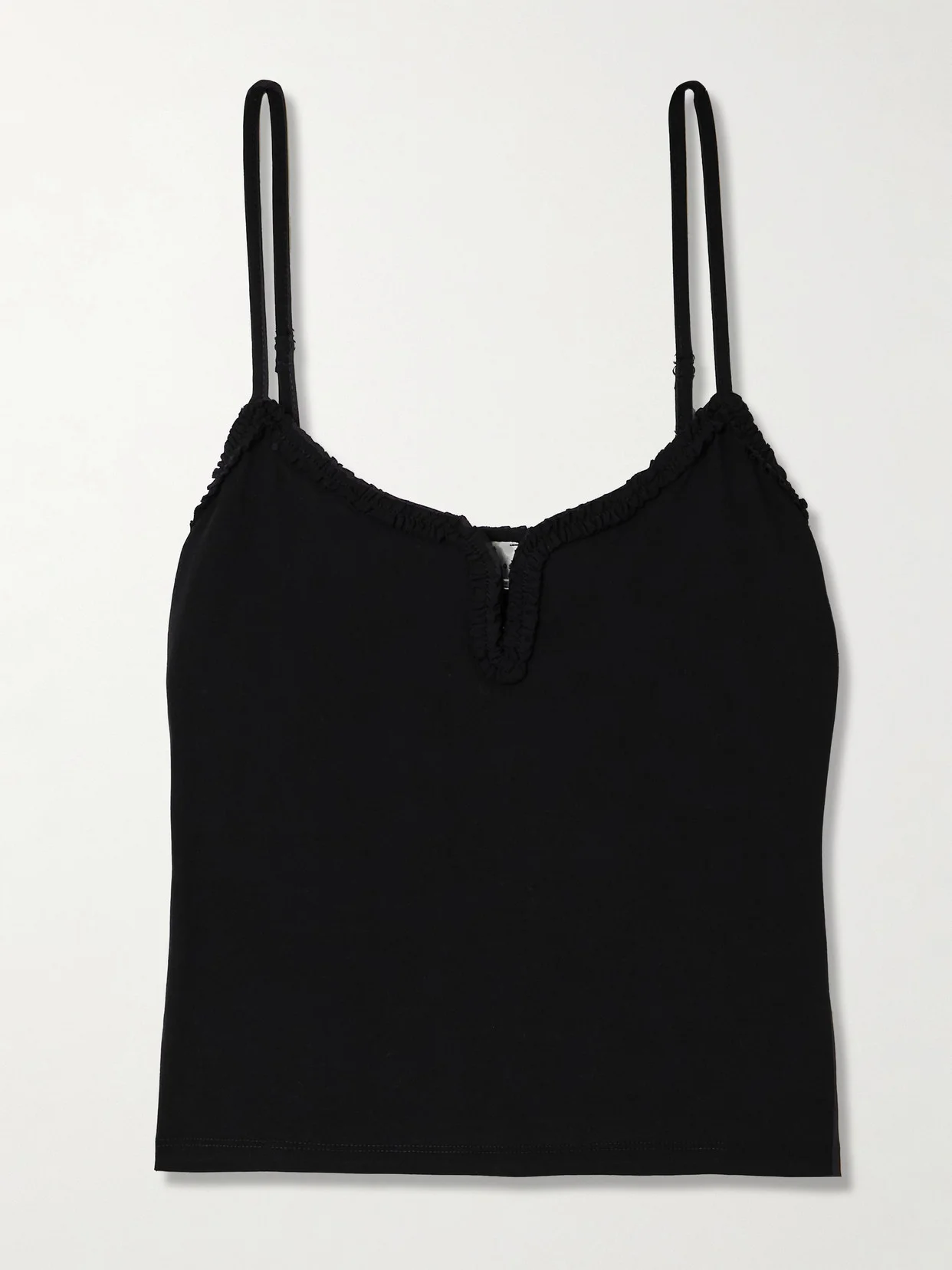 The duo of fastenings at the front of Deiji Studios' tank inspire its 'Clasp' namesake. Cut loose and boxy from organic cotton, it's traced along the neckline with soft ruffles.