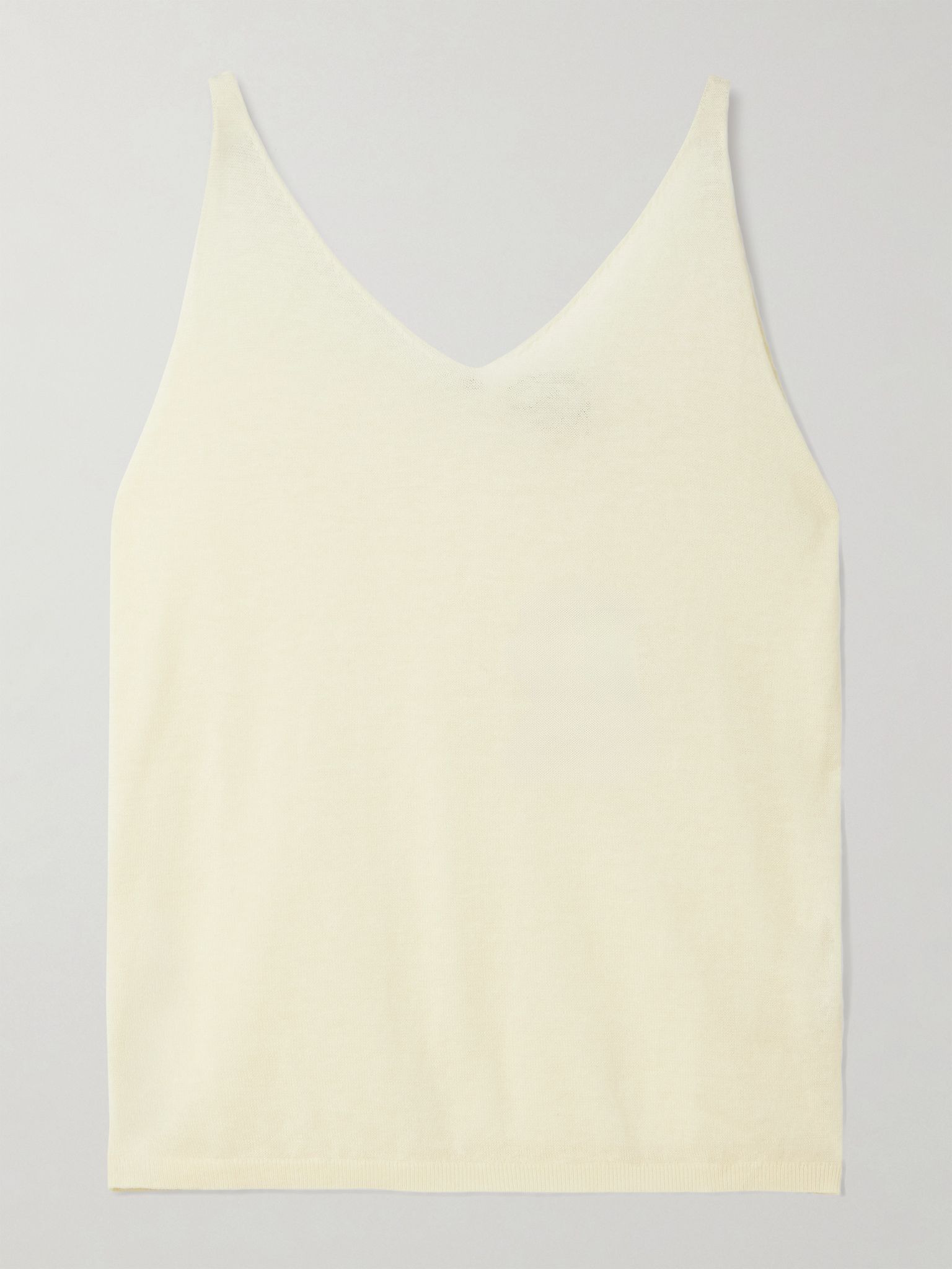 Founders Juliette Harkness and Emma Nelson put comfort and ease at the forefront when designing Deiji Studios' laid-back collections. This breezy tank is knitted from organic cotton with a V-neckline that's mirrored at the back. Size & Fit - Fits true to size, take your normal size - Designed for a relaxed fit - Mid-weight, stretchy fabric - Model is 180cm/ 5'11" and is wearing a size Small Model measurements: - Bust: 80cm/ 31.5" - Waist: 65cm/ 25.5" - Hip: 89cm/ 35" Details & Care - Off-white organic cotton - Slips on - 100% organic cotton - Dry clean