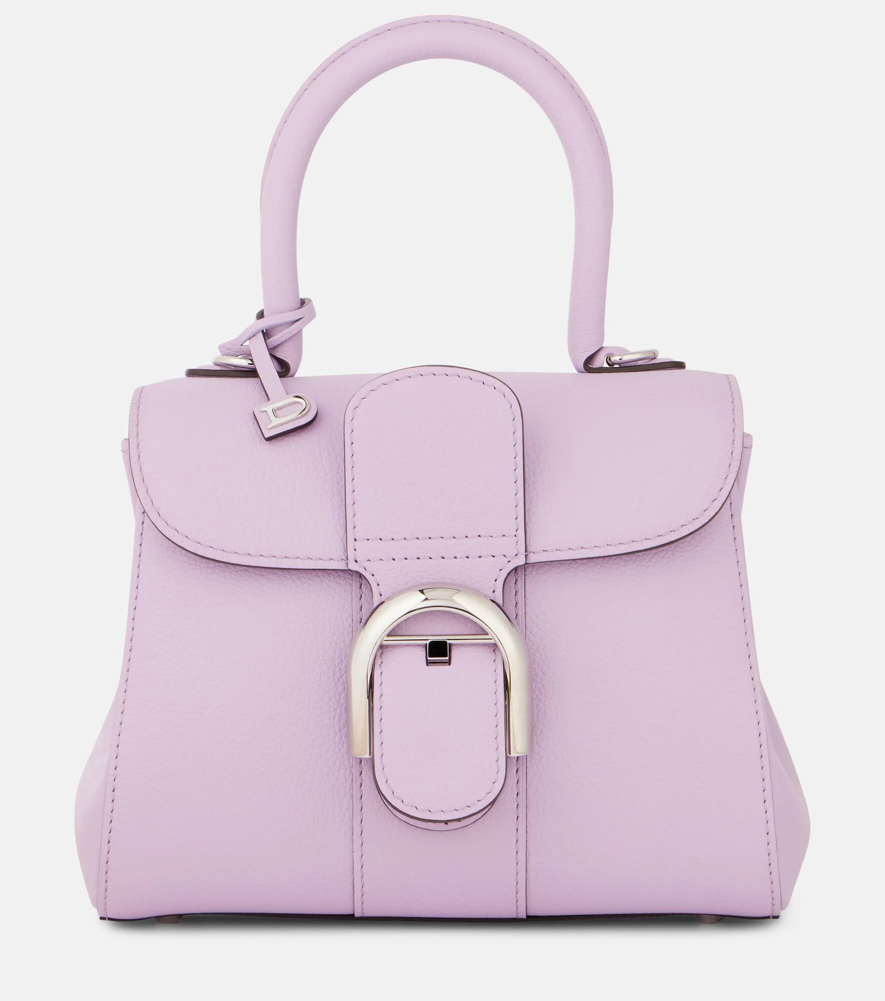The meticulously crafted Brillant is one of Delvaux's most iconic creations. First introduced in 1956, it's instantly recognizable by its trapezoidal silhouette and emblematic buckle. Showcasing timeless charm, this Mini tote bag comes in the brand's Guimauve color and is completed with silver-toned hardware. Product Details - Material: calf leather - Lining: unlined - Made in France - Color: pink - Designer color name: Guimauve - Item color: pink - Hardware color: silver - Top handle, Detachable shoulder strap - Item number: P01049993 Size & Fit - Height 16cm-6.5" - Width 20cm-8" - Depth 11,5cm-4.5"