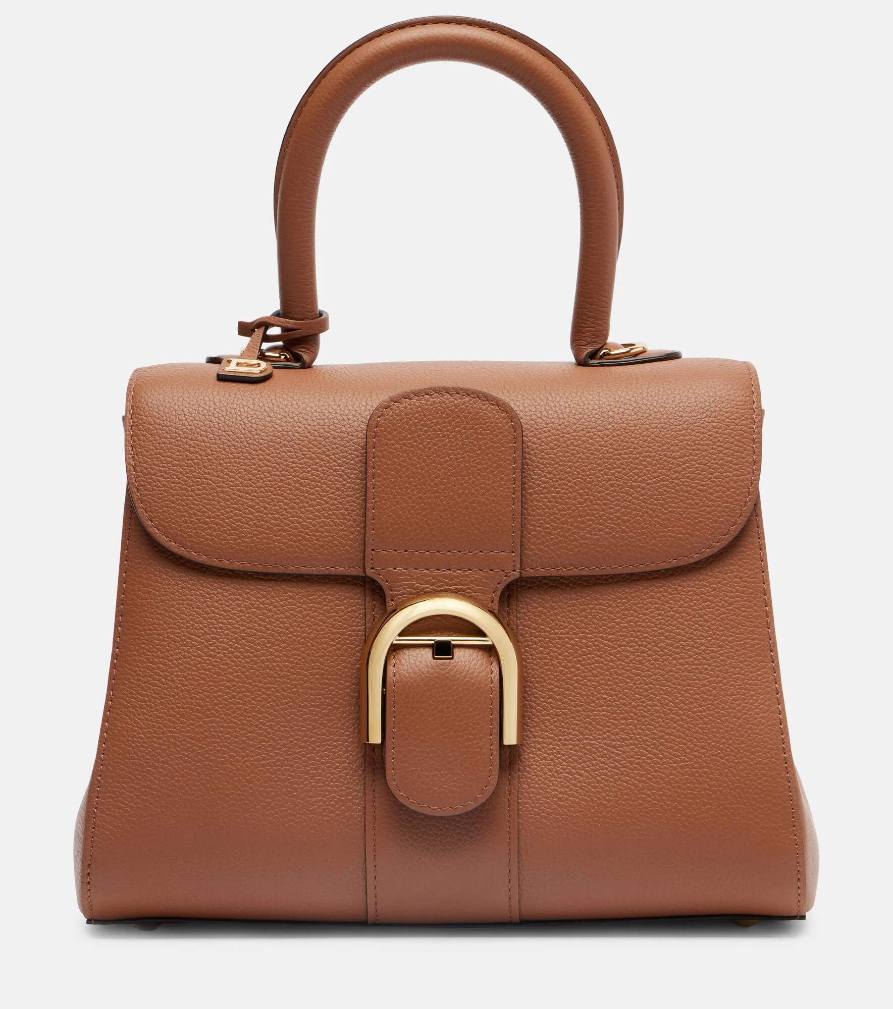 The meticulously crafted Brillant is one of Delvaux's most iconic creations. First introduced in 1958, it's instantly recognizable by its emblematic buckle. Crafted in Delvaux’s Sellier Calf leather, this PM Brillant showcases graphic lines and a distinctive trapezoidal silhouette. Arriving here in Tan, this timeless piece features the brand-signature D buckle. Product Details - Material: calf leather - Lining: leather - Made in France - Color: neutrals - Designer color name: Tan - Item color: brown - Hardware color: gold - Top handle, Detachable shoulder strap - Internal details: internal zipped pocket - Back slot pocket - Item number: P01031675 Size & Fit - Height 19cm-7.5" - Width 24cm-9.5" - Depth 12cm-4.5"