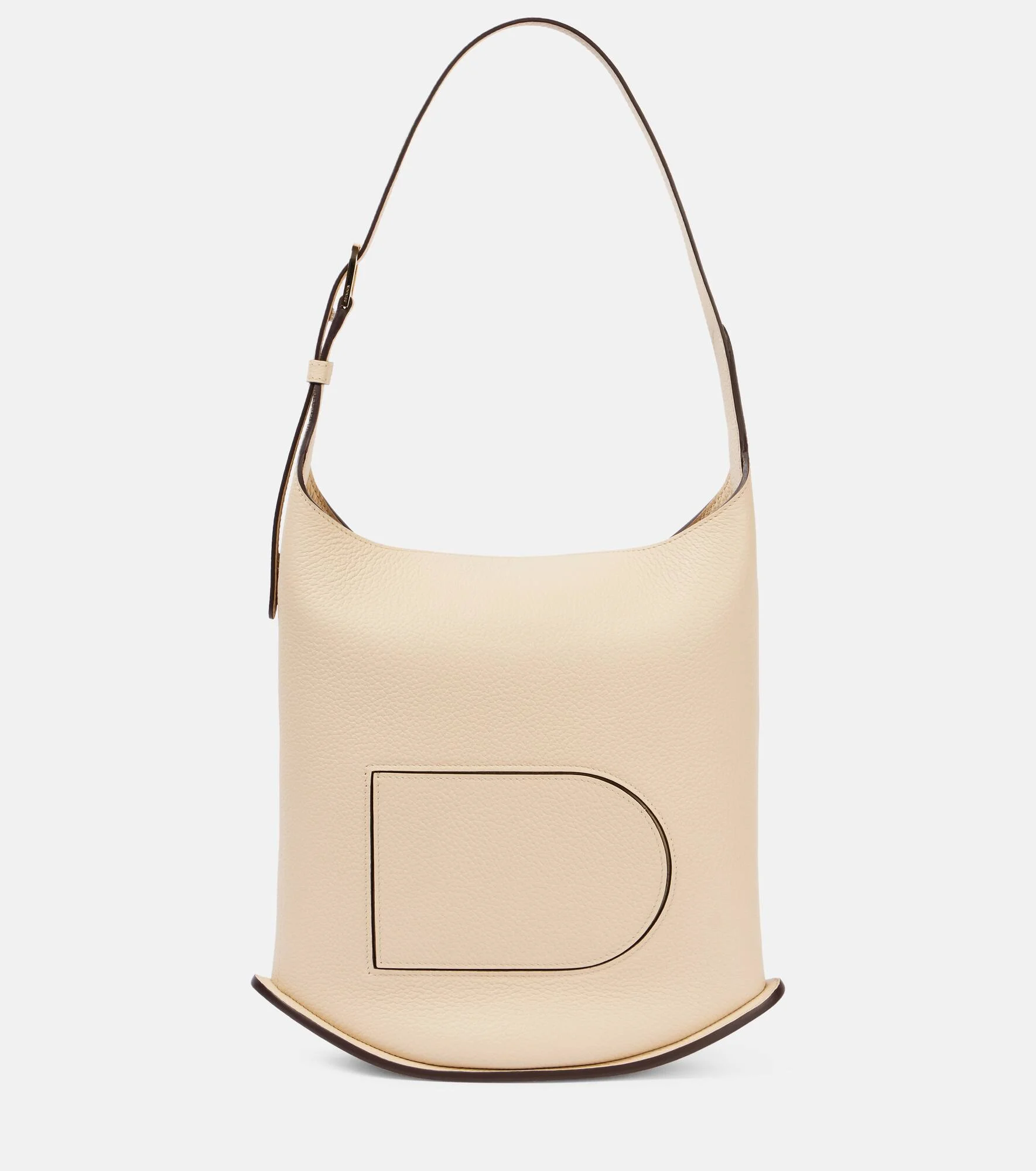 The Pin captures the carefree and youthful spirit of the '70s, blending refinement with versatility. This MM Pin is made from Taurillon Soft bull leather in Angora and accented with gold hardware. It embodies the Pin family’s signature elements, including a D-shaped pocket on the exterior and a perforated curved base that offers both elegance and functionality. These emblematic details have solidified its status as a classic of the maison. Product Details - Material: calf leather - Lining: calf leather - Made in France - Color: beige - Designer color name: Angora - Item color: beige - Internal details: single compartment - Adjustable shoulder strap - Hardware color: gold - Item number: P01063864 Size & Fit - Height 28,5cm-11" - Width 29cm-11.5" - Depth 9cm-3.5"