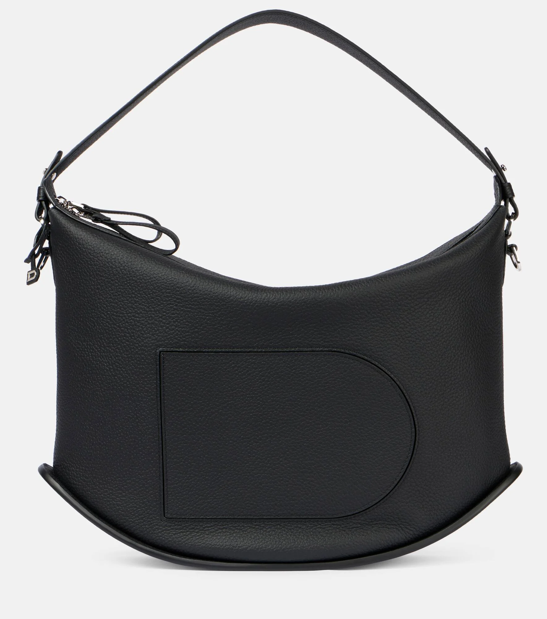 The Pin captures the carefree and youthful spirit of the '70s, blending refinement with versatility. This Pin Swing XL bag is made from Delvaux’s Taurillon Soft leather in black and accented with silver hardware. It embodies the Pin family’s signature elements, including a D-shaped pocket on the exterior and a perforated curved base that offers both elegance and functionality. These emblematic details have solidified its status as a classic of the maison. Product Details - Material: leather - Lining: leather - Made in France - Color: black - Designer color name: Black - Item color: black - Internal details: single compartment - Closure: two-way zipped top - Leather shoulder strap, Detachable shoulder strap - Item number: P01063866 Size & Fit - Length 44cm-17.5" - Height 22cm-8.5" - Width 13cm-5"
