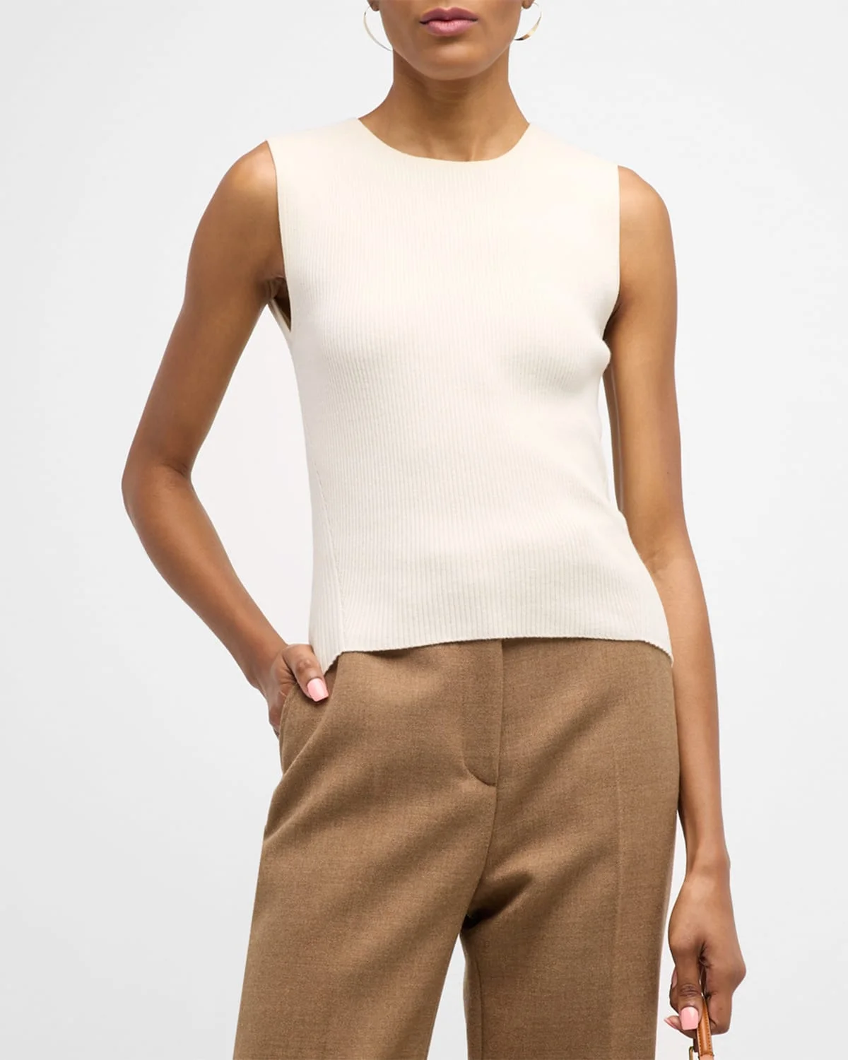 Derek Lam 10 Crosby "Ariana" ribbed wool-blend sweater tank top & nbsp; Crew neckline Sleeveless Fitted silhouette Hem sits at the hip Pullover style Cotton/Amni® nylon/wool Dry clean Imported Model is 5 & apos;10"/177cm.