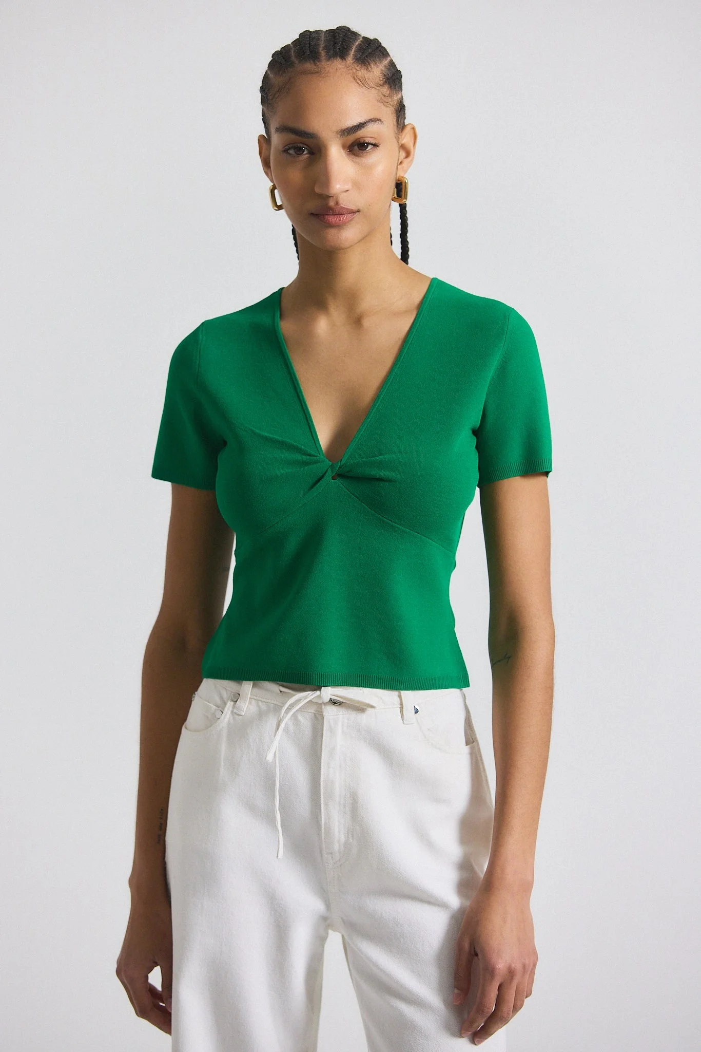 BELLE VISCOSE COMPACT KNIT TWIST FRONT SWEATER