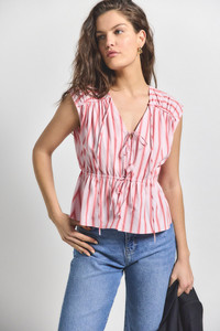 The Caroline double tie top is constructed with our classic Crosby cotton poplin in Ombre Stripe. This summery style features an elasticated waist for a comfortable fit, gathering tunnel at the shoulders with a functional tie, and a slight flare at the waist. SKU: TS517423CSS - 100% Cotton - Imported SIZE & FIT Length from shoulder to hem 16.5” based on a size S. Our model is 5’11” and is wearing a size S. This style runs true to size. FEATURES & DETAILS - Dry Clean
