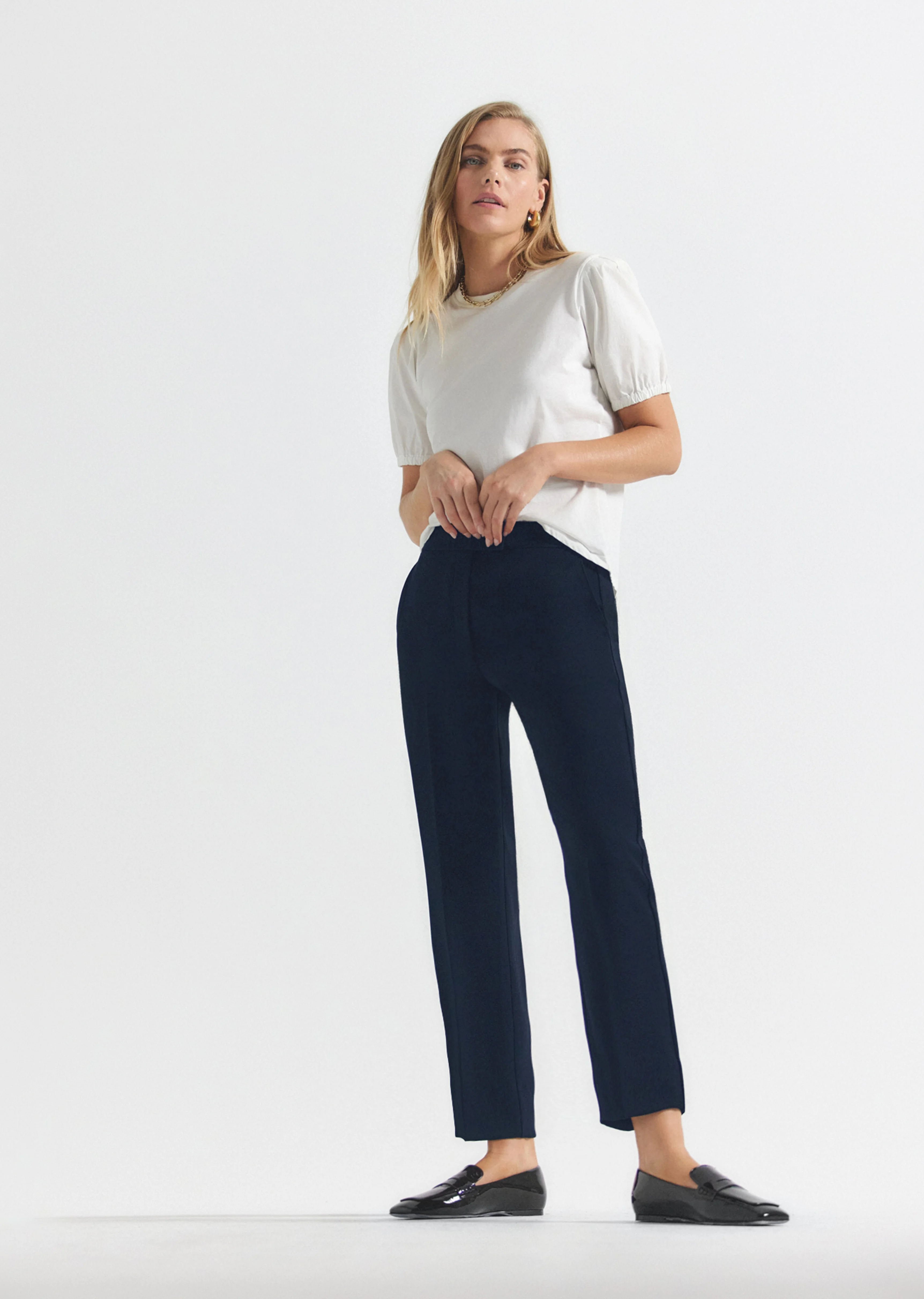The Crosby Slim Trouser is a high-rise style with a slim fit and cropped leg. An updated silhouette based off our cult-favorite Robertson trouser. This pant features an ultra clean upper with a hidden zip fly plus hook-and-bar closure with back welt pockets. The press crease detail gives it a tailored finish. Crafted with our bi-stretch Crosby Twill for extra comfort. SKU: TF511348CR - 96% Cotton, 4% Elastane - Imported SIZE & FIT Rise 11” | Inseam 27.5” | Leg Opening Circumference 13.5”, based on a size 4. Our model is 5’9” and is wearing a size 4. This style runs true to size. FEATURES & DETAILS - Dry clean only