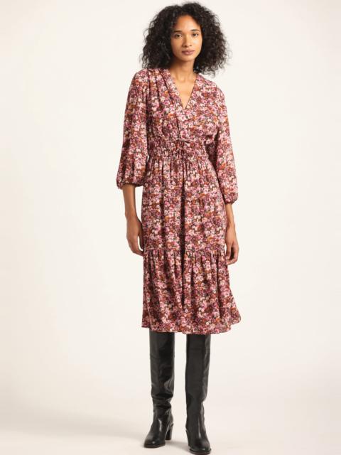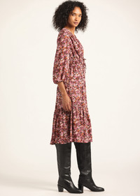 The Elsa A-Line Dress is based on our bestselling Fatima Dress, updated with long sleeves and done in a soft paisley cotton voile. The fit-and-flare maxi dress features a deep V-neckline with pleated shoulders and a gathered waistline with three small bows. It falls below the knees with a flouncy tiered hem. SKU: TCOP5640AGGP - 100% Cotton - Imported SIZE & FIT Length from shoulder to hem is 52”, based on a size 2. Our model is 5’10” and is wearing a size 2. This style runs true to size. FEATURES & DETAILS - Dry clean only