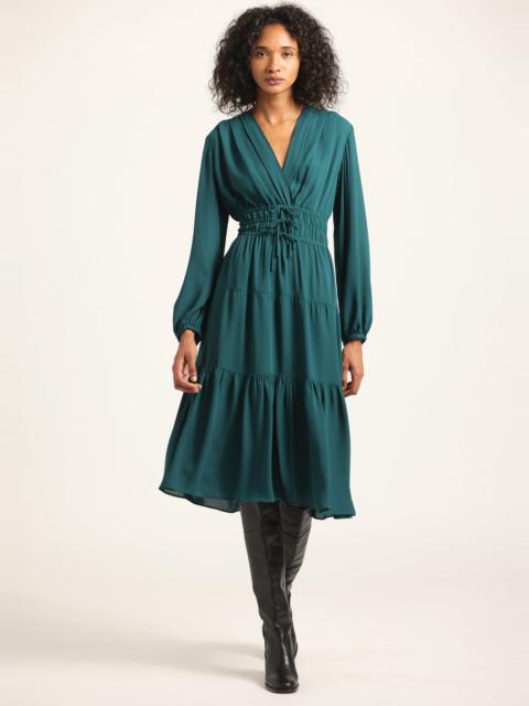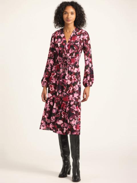 The Elsa A-Line Dress is based on our bestselling Fatima Dress, updated with long sleeves and done in a soft paisley cotton voile. The fit-and-flare maxi dress features a deep V-neckline with pleated shoulders and a gathered waistline with three small bows. It falls below the knees with a flouncy tiered hem. SKU: TCOP5640GGP - 100% Cotton - Imported SIZE & FIT Length from shoulder to hem is 52”, based on a size 2. Our model is 5’10” and is wearing a size 2. This style runs true to size. FEATURES & DETAILS - Dry clean only