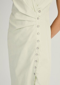 The Evi Short Sleeve Buttoned Shirt Dress is an elegant wrap style with soft pleating across. It features custom enamel DL10C logo buttons down the side placket and a slightly extended cuffed sleeve with a fully lined interior. SKU: TP415390COP - 100% Cotton / Lining: 100% Cotton - Imported SIZE & FIT Model is wearing a size 2. Height 5’10” / Bust 31” 1/2 / Waist 23” / Hips 36” This style runs true to size. FEATURES & DETAILS - Dry clean
