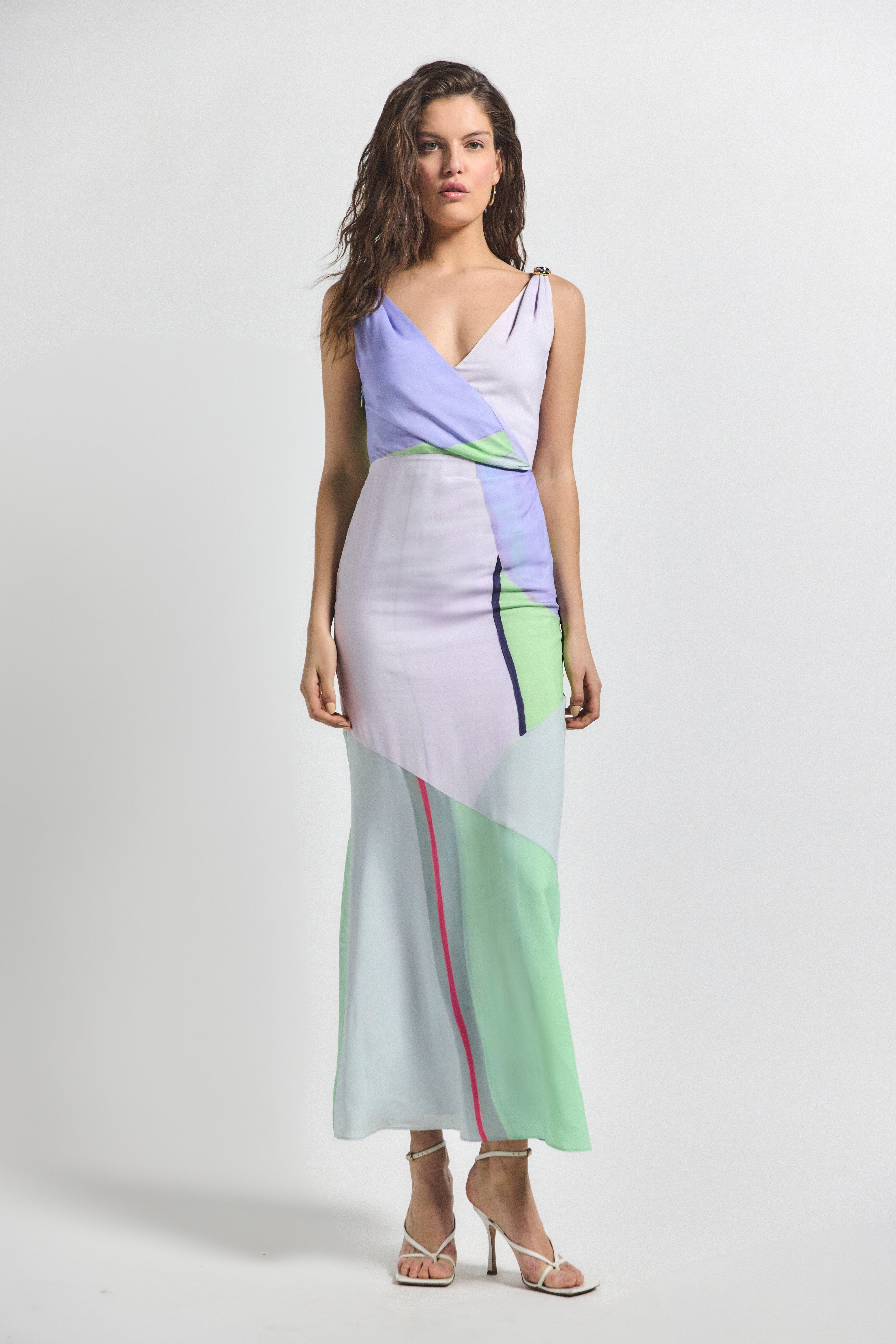 The Gabrielle dress is an elegant statement maxi, crafted with 100% viscose for a soft and luxurious feel. Features a surplice neckline, knotted straps and two detachable silver rings on each shoulder. The print was designed in collaboration with New York painter, Jill Moser, who inspired and assisted with the colors and prints of our Spring collection. SKU: TS525487GRO - 58% Cotton, 40% Polyester, 2% Spandex - Imported SIZE & FIT Length from shoulder to hem is 55”, based on a size 2. Our model is 5’11” and is wearing a size 2. This style runs true to size. FEATURES & DETAILS - Dry clean