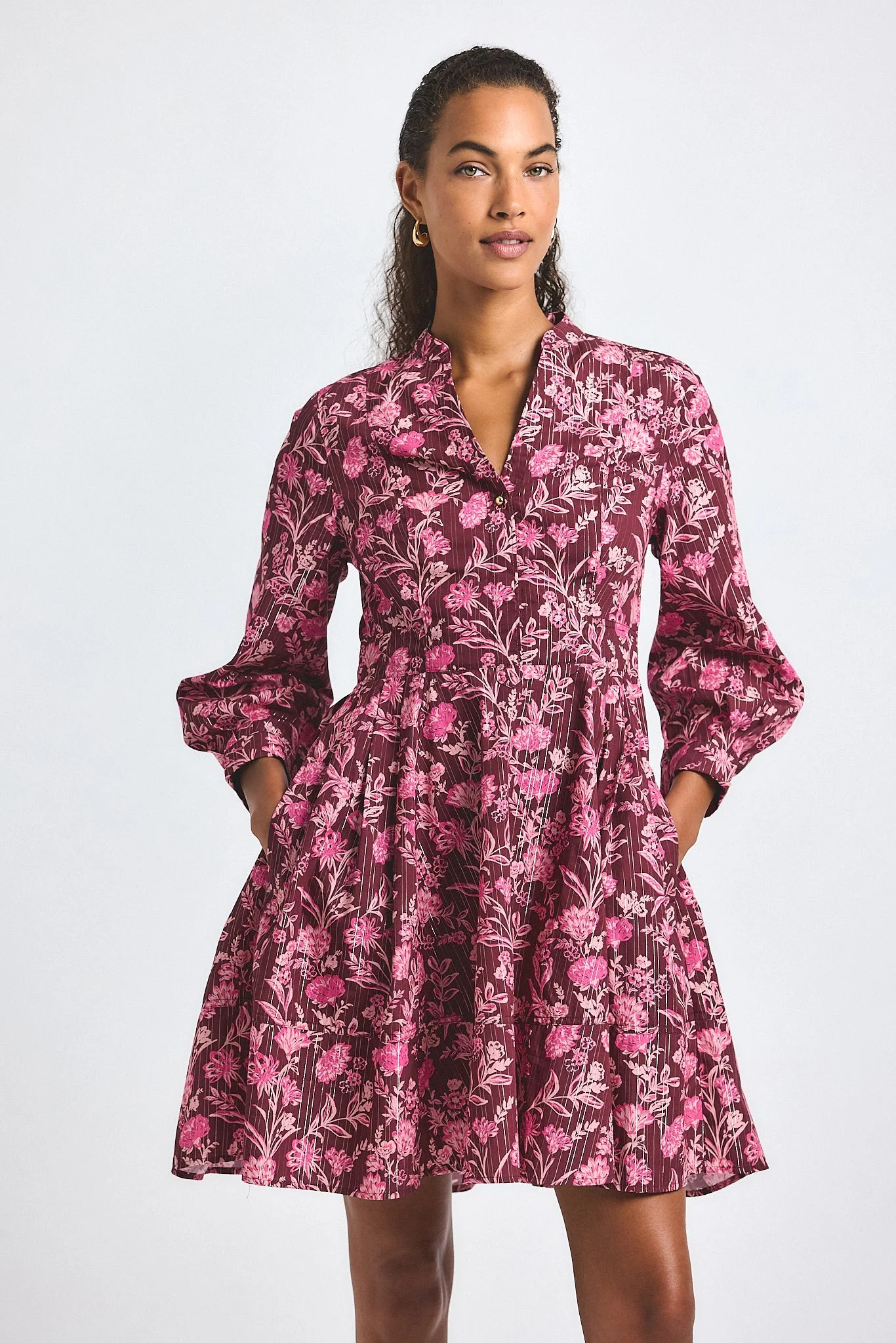 The Jessica Mini Dress is an A-line style crafted with smocking on the back. It features an exposed button, a hidden placket and wide facing cuffs. SKU: TF515460LUS - 97% Cotton, 3% Metallic Fibers - Imported SIZE & FIT Length from shoulder to hem is 36” | Sleeve Length is 28",based on a size 2. Our model is 5’9” and is wearing a size 2. This style runs true to size. FEATURES & DETAILS - Dry clean only