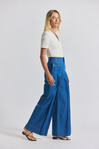 KATRINA CHAMBRAY WIDE LEG PLEATED TROUSER