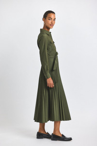 KENZA COTTON POLY POPLIN PLEATED SHIRT DRESS