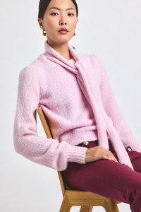 The Leilani plush sweater is a new staple for your everyday wardrobe. Made from a super soft yarn, the sweater features extended sleeves, pleating at the shoulder and rib trim on the cuff and hem. Complete with a neck tie that can be fashioned your way, or detached for a more classic look. Slightly cropped, with a regular fit. SKU: TF529373YBE - 31% Wool, 30% Acrylic, 24% Nylon, 15% Alpaca - Imported SIZE & FIT Length from shoulder to hem is 20.75". Sleeve Length is 25.5", based on a size S. Our model is 5’10” and is wearing a size S. This style runs true to size. FEATURES & DETAILS - Dry clean only