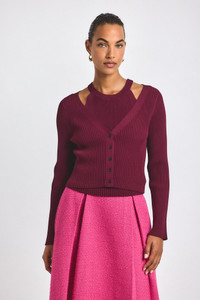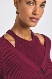 The versatile pre-styled Lonnie Layered Cardigan puts an outfit together for you. Constructed from a soft ribbed viscose, it offers a form-fitting shape with some stretch. Attached at the back and sides, this cardigan and tank combo gives the illusion of layers and can be worn open or closed. Finished with tonal buttons and rib trim at the armholes, neckline and placket. SKU: TF529384YDV - 81% Viscose, 19% Polyester - Imported SIZE & FIT Length from shoulder to hem is 19". Sleeve Length is 24.5", based on a size S. Our model is 5’9” and is wearing a size S. This style runs true to size. FEATURES & DETAILS - Dry clean only