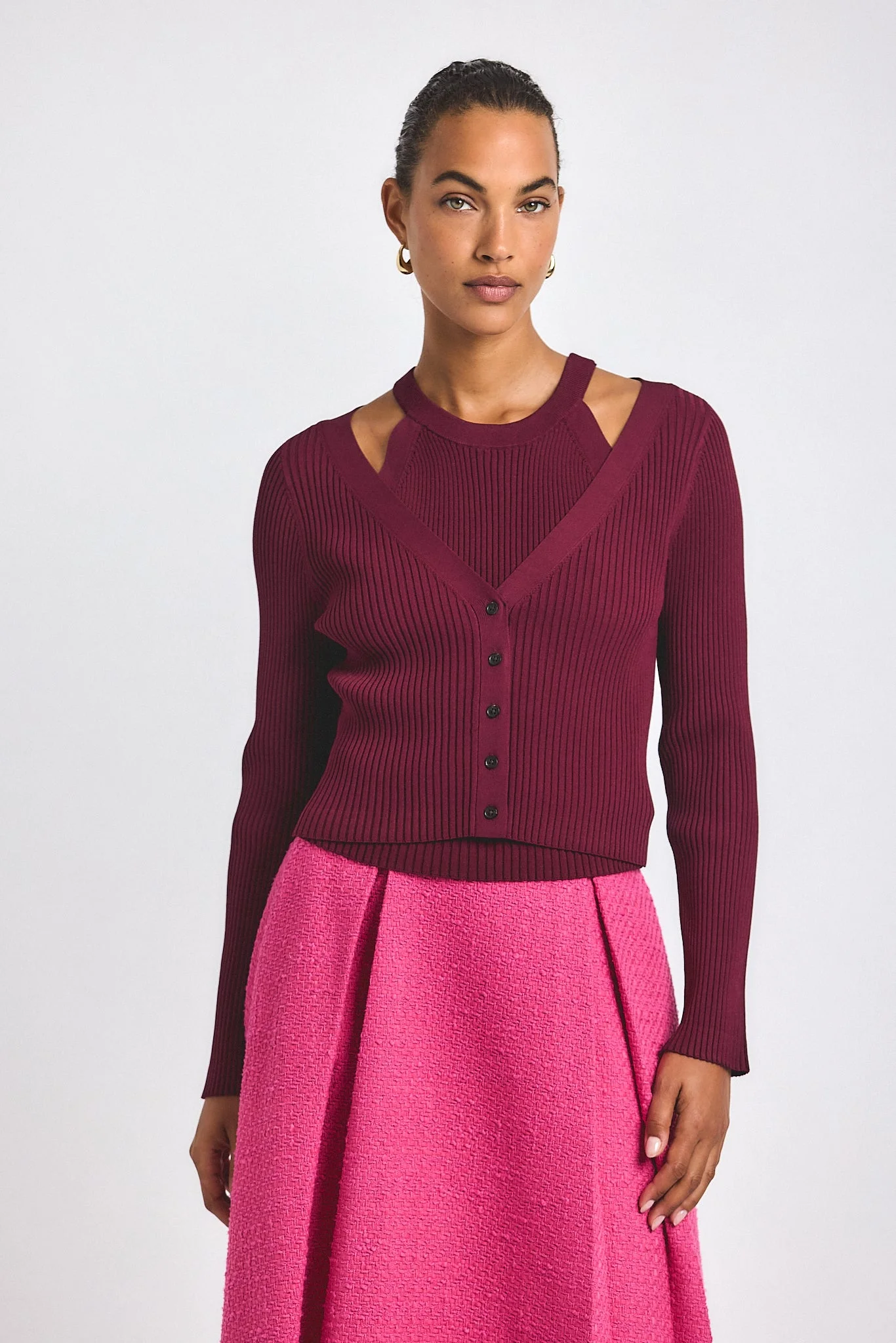 LONNIE VISCOSE KNIT LAYERED CARDIGAN