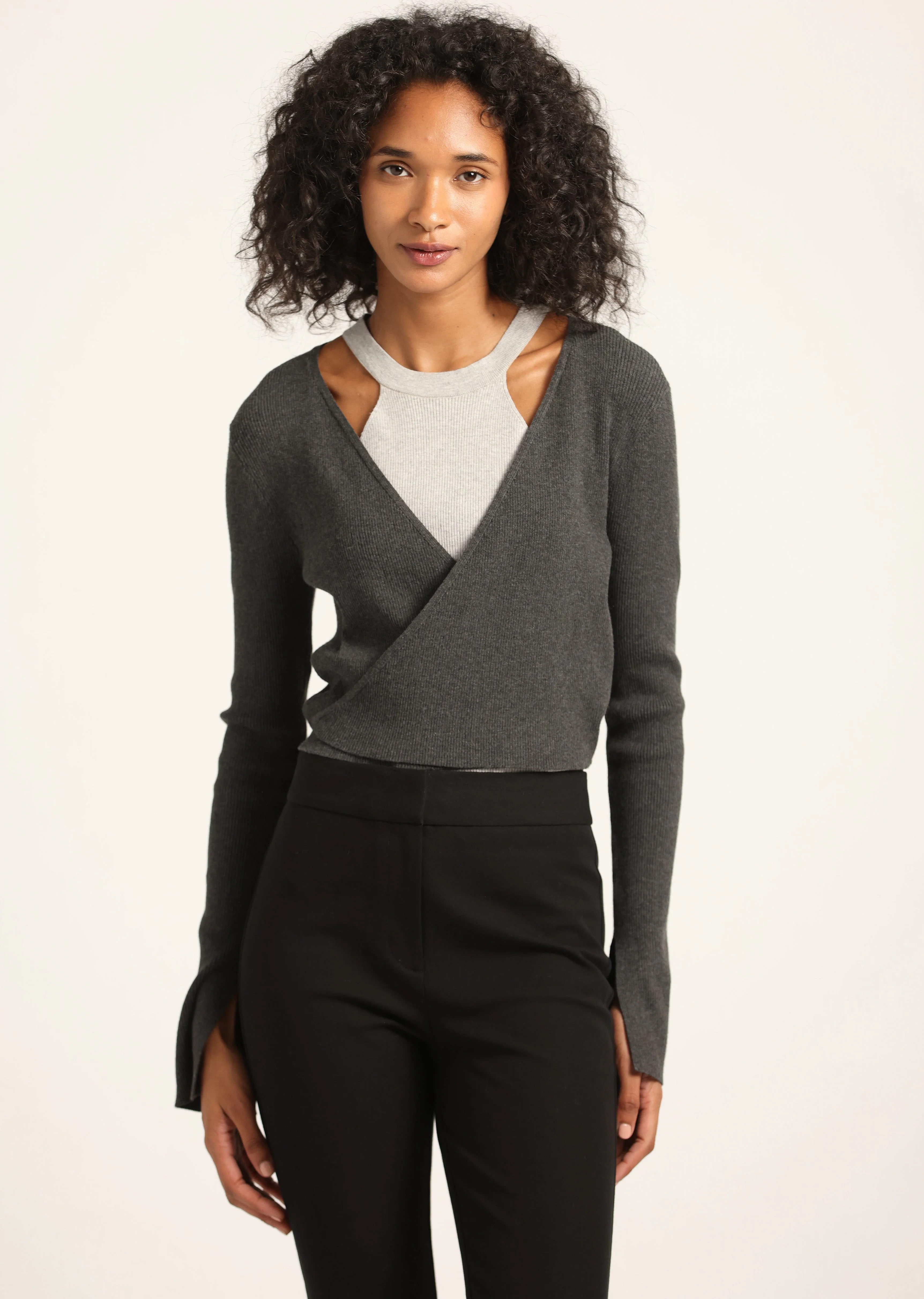 Constructed from a fine ribbed knit, the Maren is a pre-styled wrap cardigan with an inner halter neck tank. Attached at the back and sides, this piece creates the illusion of layers and wraps around the waist with a tie for a flattering, fitted look. Complete with ribbed trims and an in-seam slit on the sleeves. SKU: TF519389YSM - 72% Viscose, 28% Polyester - Imported SIZE & FIT Length from shoulder to hem is 18.5” and sleeve length is 24.5" based on a size S. Our model is 5’9” and is wearing a size S. This style runs true to size. FEATURES & DETAILS - Dry clean only