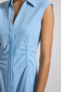 Nera is our reimagined shirt dress- refined and sophisticated, yet chic and effortless. A fitted stretch poplin midi dress, with flattering ruched details at the waist, hidden pockets on the sides, extended shoulders and a cut-away neckline. It contours the body, while still feeling light and roomy- perfect for a hot summer day. Seen here in a mini gingham print. SKU: TP525489MGN - 65% Polyester, 33% Rayone, 2% Spandex - Imported SIZE & FIT Length from shoulder to hem is 47.5” based on a size 2. Our model is 5’10” and is wearing a size 2. This style runs true to size. FEATURES & DETAILS - Dry clean only