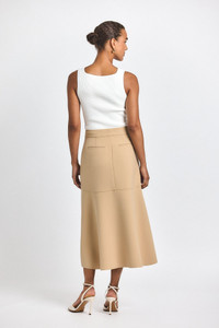 The Nicolette Midi Skirt is a softly tailored style with a hi-lo hem. It features a coin pocket and back welt pockets. SKU: TF524095SCA - 64% Polyester, 27% Viscose, 6% Cotton, 3% Elastane - Imported SIZE & FIT Length from top edge to hem is 27.25” based on a size 2. Our model is 5’9” and is wearing a size 2. This style runs true to size. FEATURES & DETAILS - Dry clean only
