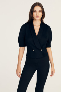 The Phillipe Short Sleeve Jacket is fitted to the body with a softly tailored and waisted look. It features a short version of the dress with wasting, sleeves, double breasted with a shawl collar, novelty rose buttons. SKU: TF432163CTZ - 74% Rayon, 24% Polyester, 2% Spandex / Lining:100% Polyester - Imported SIZE & FIT Model is wearing a size 2. Height 5’9” / Bust 31” / Waist 24.5” / Hips 35” This style runs true to size. FEATURES & DETAILS - Dry clean