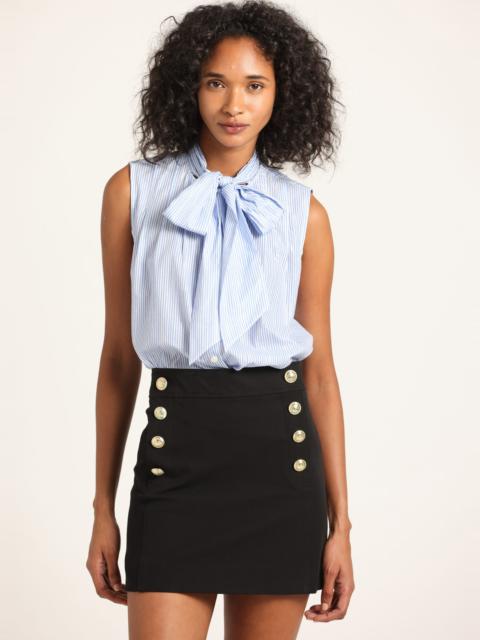 The Reyna Mini Skirt is made from our signature bi-stretch Crosby Twill. The A-line silhouette is fitted and gently tailored, with a side seam zip and gold sailor button details along the hips. SKU: TF514132CR - 96% Cotton, 4% Elastane - Imported SIZE & FIT Waist: 29", based on a size 2. Our model is 5’9” and is wearing a size 2. This style runs true to size. FEATURES & DETAILS - Cover metal embellishments with foil before dry cleaning.