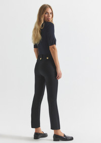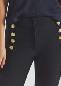 Our iconic cropped twill trouser, updated in a new slim silhouette, with silver sailor button details along the hips. Zip fly with button closure, flat front, tonal buttoned belt loops and stitching. SKU: TF511347CR - 96% Cotton, 4% Elastane - Imported SIZE & FIT Rise 11” | Inseam 27.5” | Leg Opening Circumference 13.5”, based on a size 4. Our model is 5’9” and is wearing a size 4. This style runs true to size. FEATURES & DETAILS - Cover metal embellishments with foil before dry cleaning.