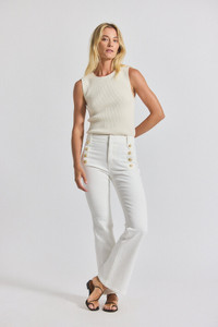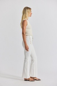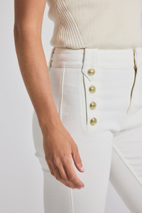 Meet the Robertson- our iconic cropped pant with gold sailor button details along the hips is updated this season in a premium comfort stretch Italian denim and a white wash. Featuring a zip fly with button closure, flat front, tonal buttoned belt loops and stitching. SKU: TP511072214 - Machine Wash - 99% Cotton, 1% Elastane - Imported SIZE & FIT Rise 11” | Inseam 33” | Leg Opening Circumference 22.5”, based on a size 26 Our model is 5’11” and is wearing a size 26. This style runs true to size. FEATURES & DETAILS - Turn Garment Inside Out, Machine Wash Cold, Gentle Cycle With Like Colors, Do Not Bleach, Tumble Dry Low