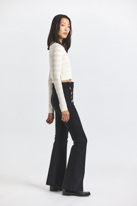 Meet the Robertson- our iconic cropped pant with gold sailor button details along the hips is updated this season in a premium comfort stretch twill. Featuring a zip fly with button closure, flat front, tonal buttoned belt loops and stitching. SKU: TF51100BCR - 96% Cotton, 4% Elastane - Imported SIZE & FIT Rise 11” | Inseam 33” | Leg Opening Circumference 22”, based on a size 2 Our model is 5’10” and is wearing a size 2. This style runs true to size. FEATURES & DETAILS - Cover metal embellishments with foil before dry clean.