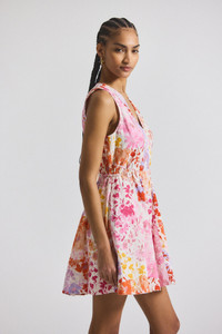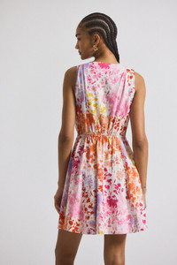 TIA FLORAL PRINTED STRETCH LINEN MINI DRESS
