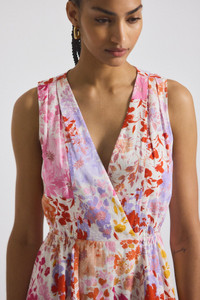 The Tia is a utility mini dress with a wrap V-neckline, elasticated waistband, and patch pockets- combining comfort with function. Designed as a pullover dress that will have you looking put together with just a moment notice. Made with a stretch linen in a seasonal floral print. SKU: TP515488LSM - 70% Rayon, 30% Linen - Imported SIZE & FIT Length from shoulder to hem is 36”, based on a size 2. Our model is 5’10” and is wearing a size 2. This style runs true to size. FEATURES & DETAILS - Dry clean only