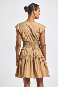 The Tora V-Neck Dress is made from a crisp cotton poplin and cut with a flouncy a-line silhouette. It features pleating throughout with short sleeves, a gathered waist, and three small bows on the front. It falls to a full, tiered skirt with shirring details to accentuate the volume. If smaller busted, please size down. SKU: TF515072PPO - 95% Polyester, 5% Elastine - Imported SIZE & FIT Length from shoulder to hem is 37.5” based on a size 2. Our model is 5’9” and is wearing a size 2. This style runs true to size. FEATURES & DETAILS - Dry clean only