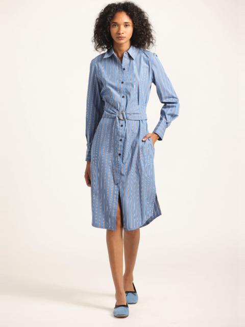 The Veronica Belted Shirt Dress is crafted from a stretch cotton poplin. The crisp shirt dress features a relaxed spread collar, front button placket with tonal buttons down the front, long sleeves and a curved hem. It is finished with a pre-styled shiny nickel D-ring belt with back encased elastic for a cinched waist and comfortable fit. SKU: TCOP5178ACSS - Imported SIZE & FIT Model is 5'10 wearing a size 2. This style runs true to size. FEATURES & DETAILS - Dry clean only