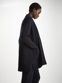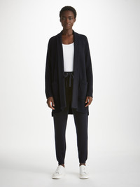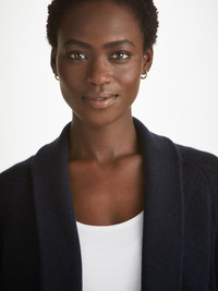 A cashmere cardigan is the perfect way to add a little luxury to your everyday outfit. Our Nina women's cashmere cardigan in navy has a relaxed, oversized fit and a cosy feel. Crafted from super-soft and warm 5 gauge pure Italian cashmere made by Cariaggi, which we consider to be best in class. Touch this fabric and you'll be reminded what cashmere should feel like. The material hangs wonderfully, for a look that's as luxurious as the feel. With its ribbed cuffs and hem, the Nina is ideal for layering over your favourite loungewear or as a stylish outerwear piece. This 100% cashmere cardigan also features a shawl collar, stepped hem and patch pockets to keep your hands warm. Easy to fold and pack into your luggage, this cardigan is a versatile, stylish layer to keep you warm during the colder months. Keep your cashmere looking its best with our Beechwood Cashmere Comb. The model is 5’9” / 175cm tall with waist size 23.5” / 60cm, bust size 32” / 82cm. She wears a size Small. PRODUCT DETAILS Material: Pure Cashmere Fabric Weight: Heavy Fabric Type: Jersey Gender: Women's Colour: Navy Pattern: Plain Sleeve Length: Long Sleeve Season: 24-W Country of Origin: Mauritius Composition: 100% Cashmere Fit: Relaxed Fit Item Number: 1267-NINA010NAV